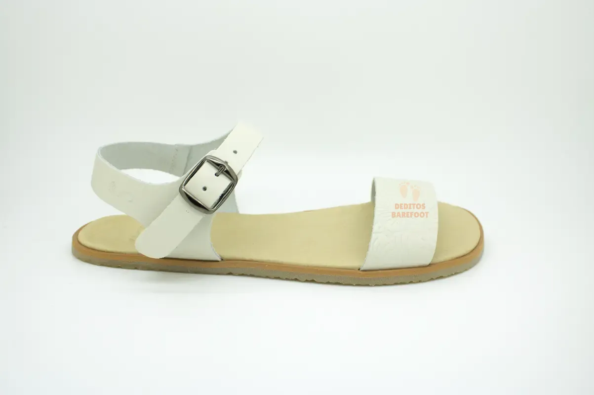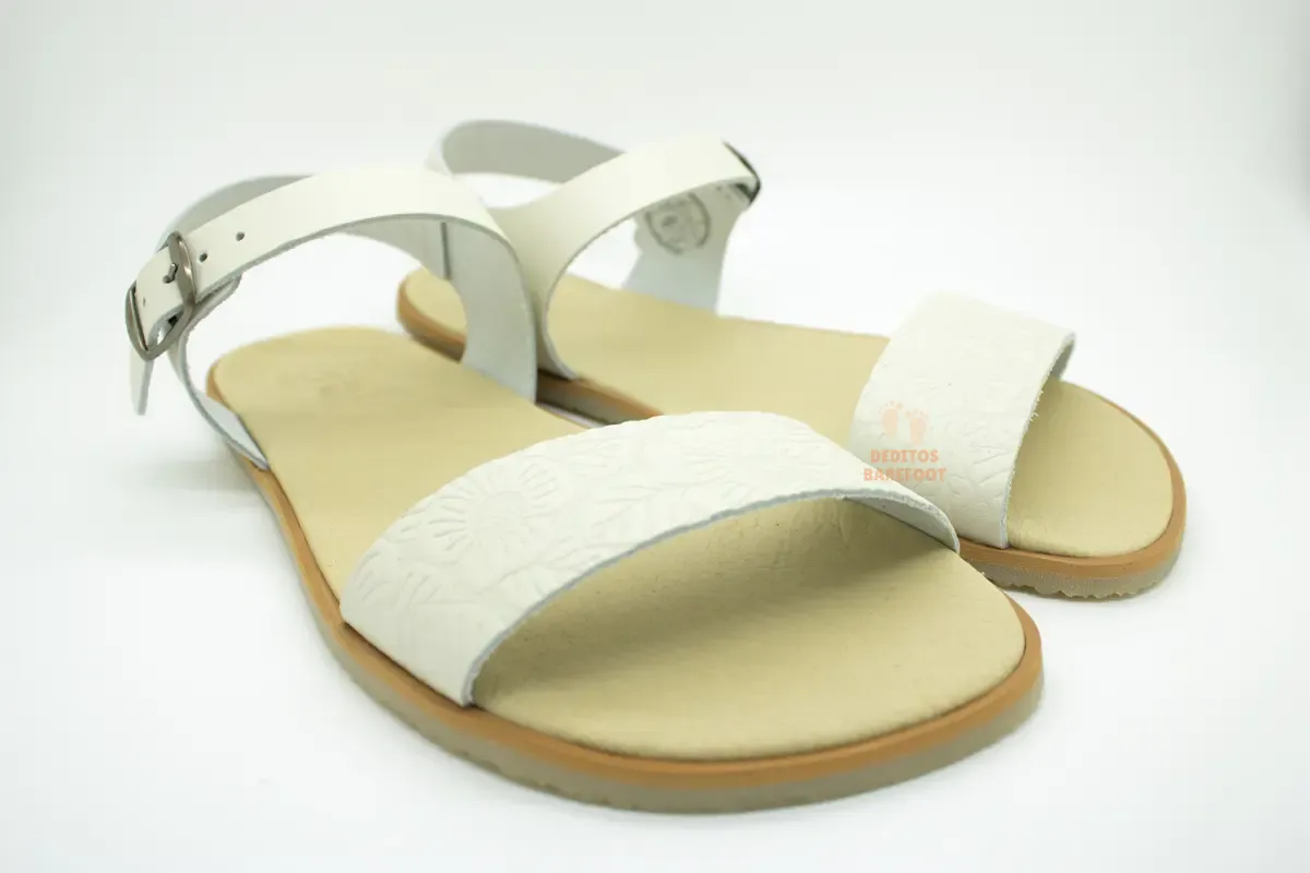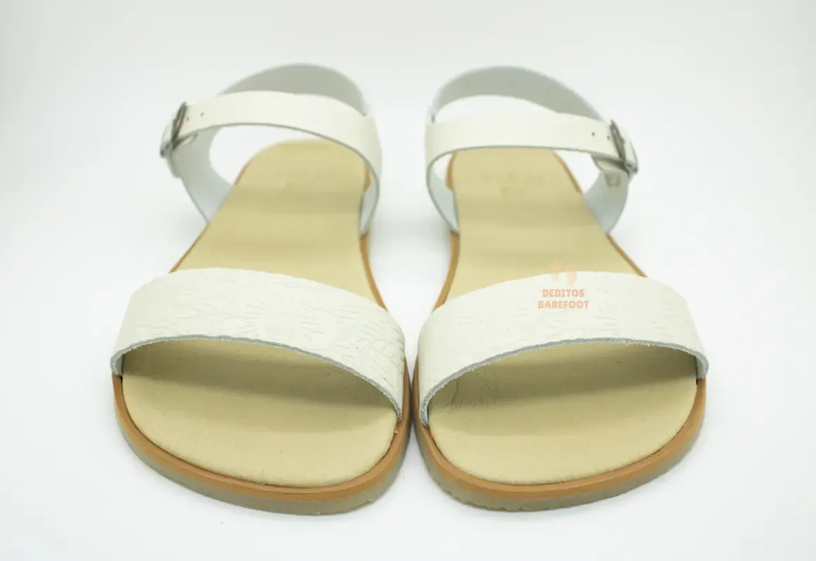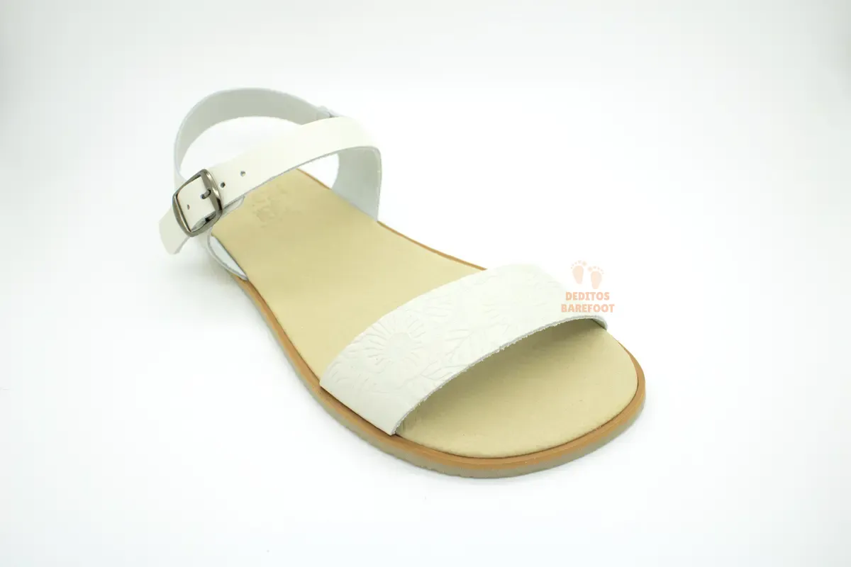 Estas son unas sandalias barefoot blancas para mujer pensadas para quienes quieren disfrutar del verano con estilo sin renunciar a la comodidad. Su diseño destaca por su tono blanco y sus detalles en la banda que sujeta la zona delantera del pie, un acabados que aportan un aire elegante, femenino y muy fácil de combinar. Tallas desde la 36 a la 42