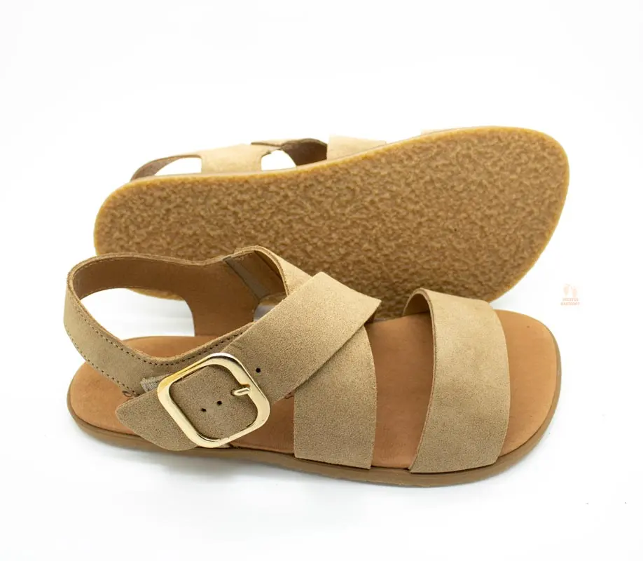 En cuanto al cierre de estas sandalias barefoot es con ajuste mediante hebilla dorada+ tira elástica, muy cómodas de calzar y de quitar además de tener un ajuste óptimo.