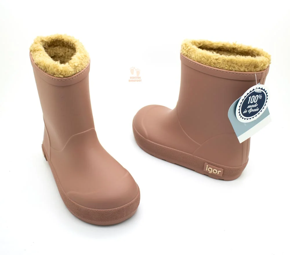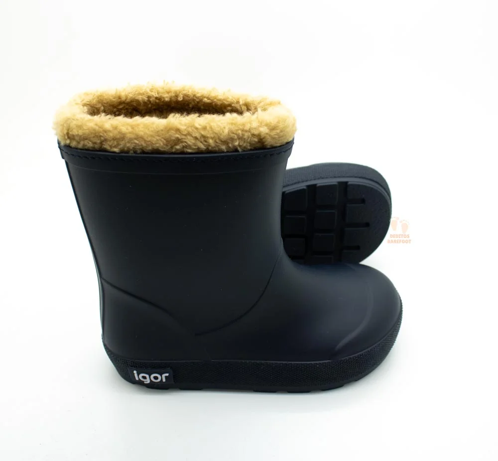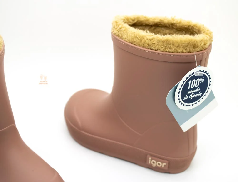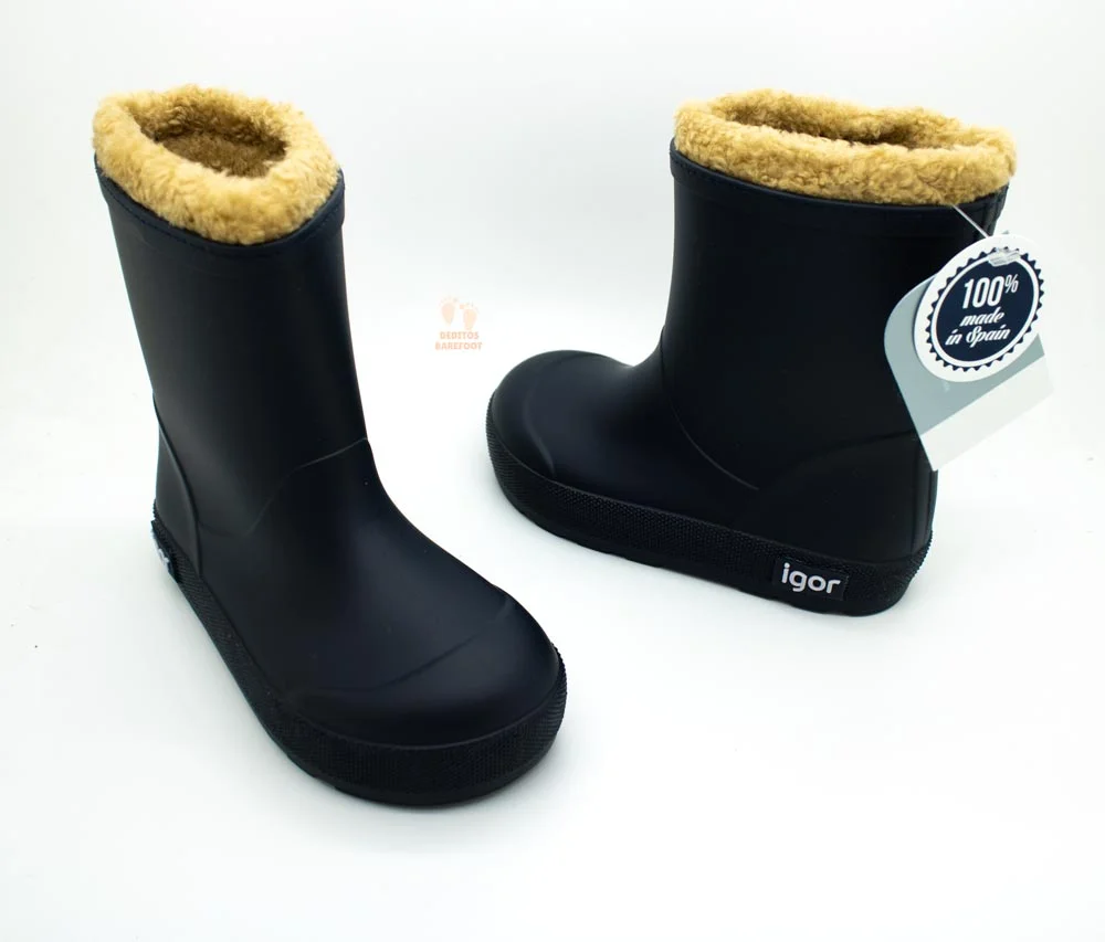 Botas de agua respetuosas del fabricante español IGOR, la fusión perfecta entre estilo y comodidad! además son ideales para los días lluviosos y frios mientras cuidas el desarrollo natural de los pies de los más pequeños. Te presentamos el modelo YOGI BORREGUITO con estas botas no solo mantendrán los pies secos, sino también bien abrigados gracias a su interior completamente forrado con suave borreguito.Estas botas son respetuosas cumpliendo con los requisitos de un calzado respetuoso. Disponible en tallas 24 a la 30 y en estos diseños: