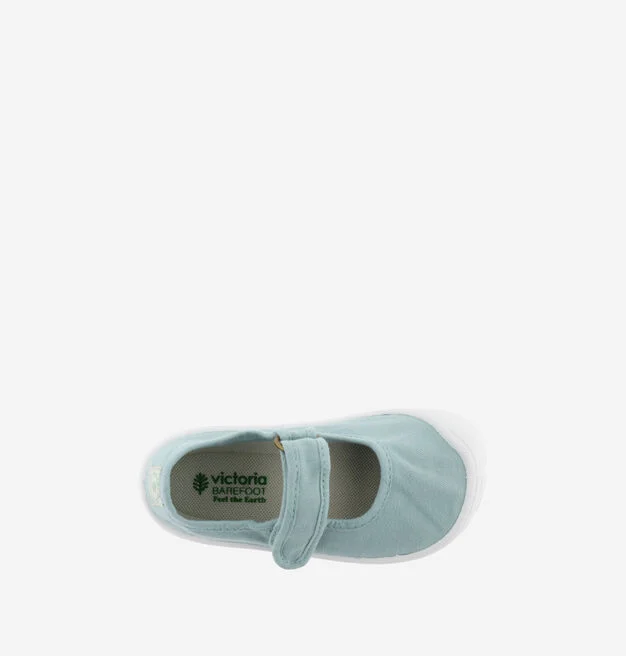 Merceditas barefoot de lona para niña del fabricante español Victoria, fabricadas en algodón reciclado y ecológico, con cierre de tira adherente para un ajuste cómodo y seguro. Su horma amplia, diseño sin refuerzos y suela flexible permiten el movimiento natural del pie, favoreciendo un desarrollo saludable. Ligeras, transpirables y respetuosas con el medio ambiente, ideales para el día a día. Disponibles desde la talla 22 a la 28