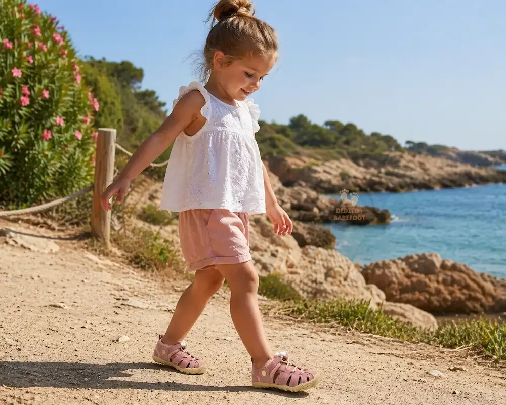- Desarrollo natural: las sandalias barefoot permiten que músculos y ligamentos crezcan sin restricciones, favoreciendo una estructura del pie sana.